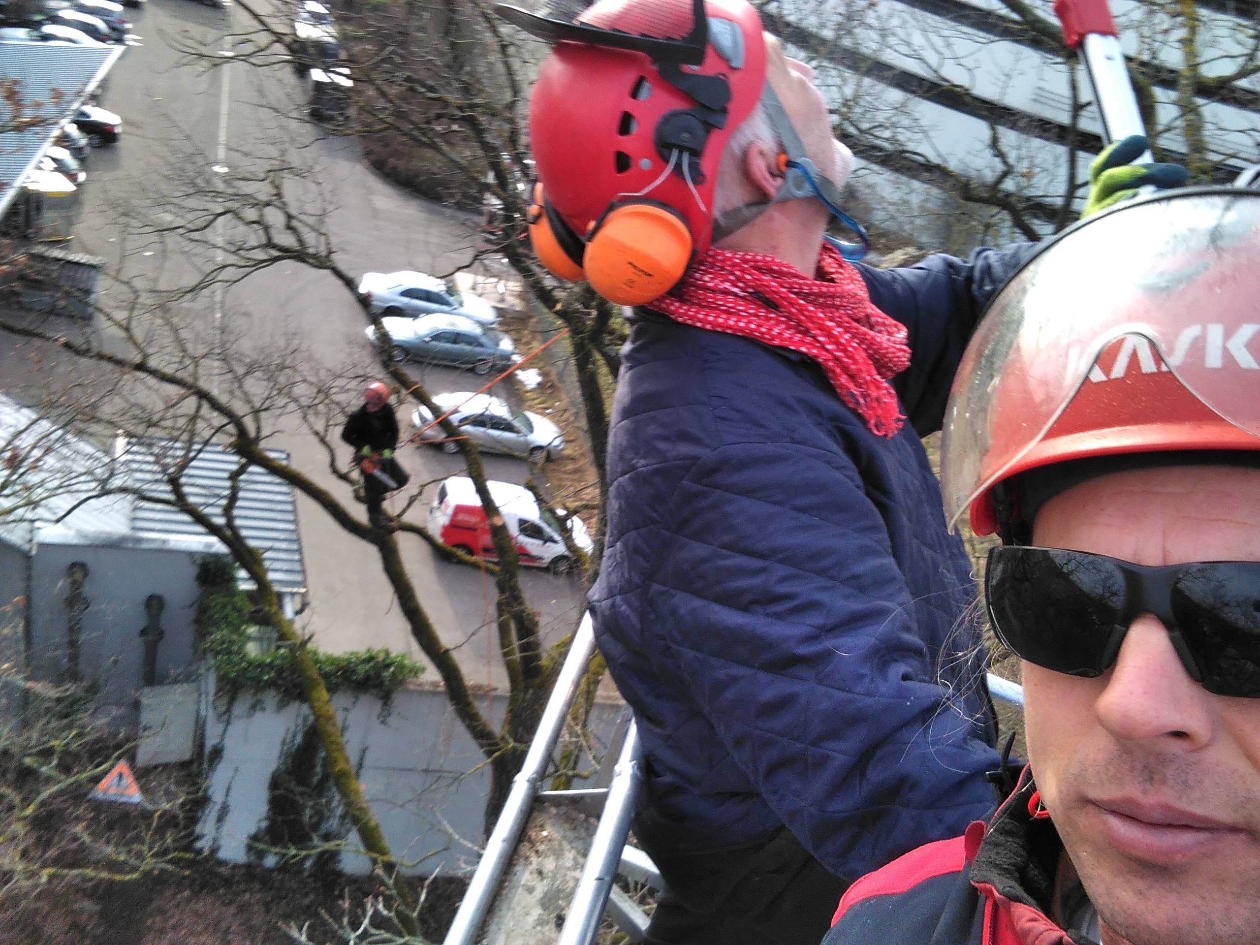 Im Gegensatz zu Arbeitsbühnen schonendes Arbeiten im ganzen Kronenbereich ohne verbleibende Baumsubstanz zu verletzen.