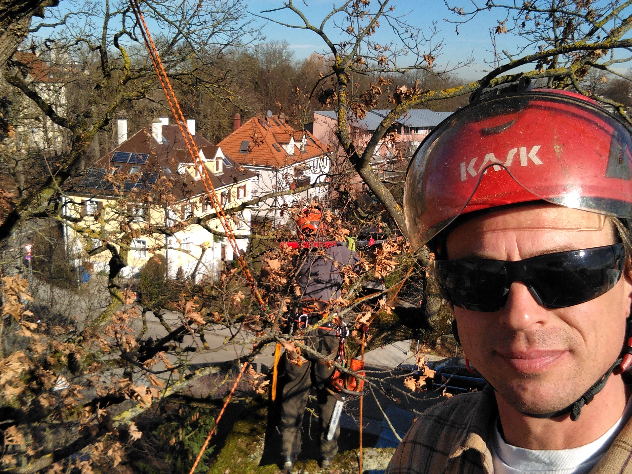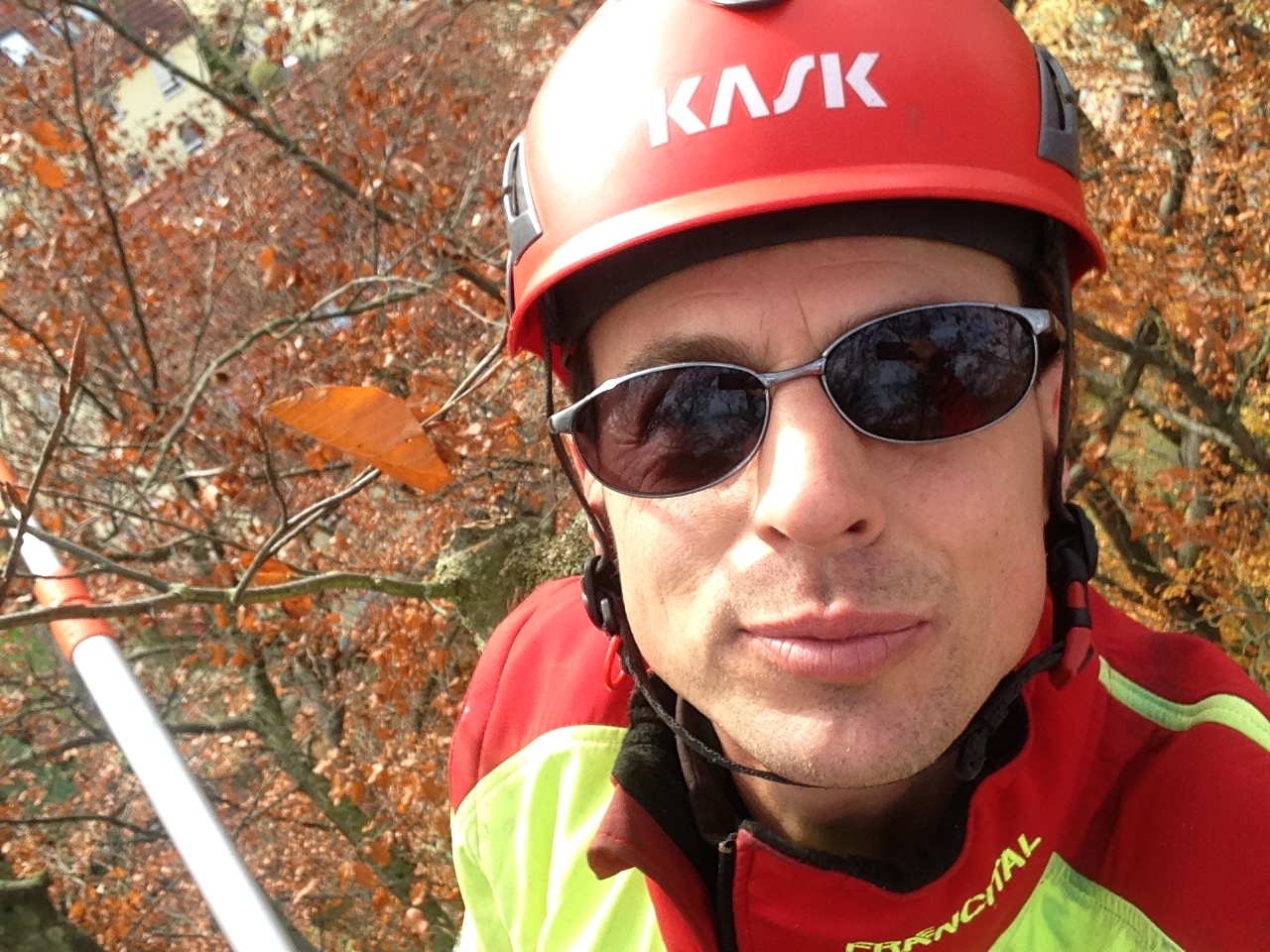 Wir pflegen Ihre Bäume sehr gerne, dies ist meine "Lieblingstätigkeit". Zur Not fällen wir die Bäume auch mit Hilfe der Seilklettertechnik SKT B