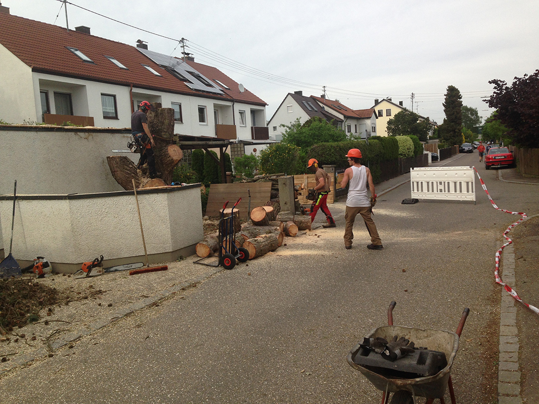 Pflegemaßnahmen und Fällungen können auf kleinstem Raum ausgeführt werden. Wir bringen jeden Baum sicher zu Boden, auch wenn wir jeden Ast einzeln abseilen.