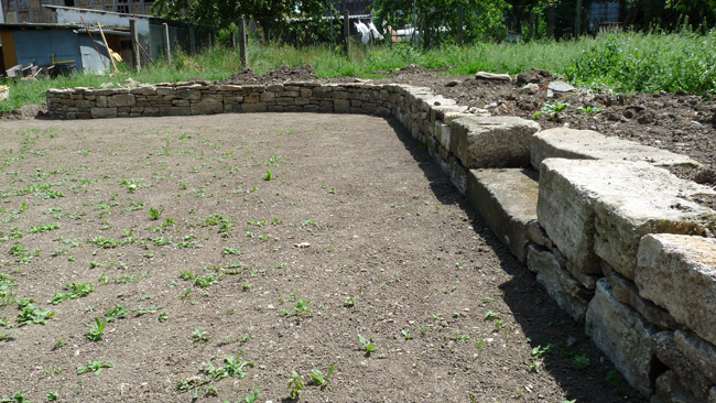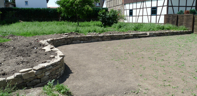 Natursteinmauer aus Kalkstein.
